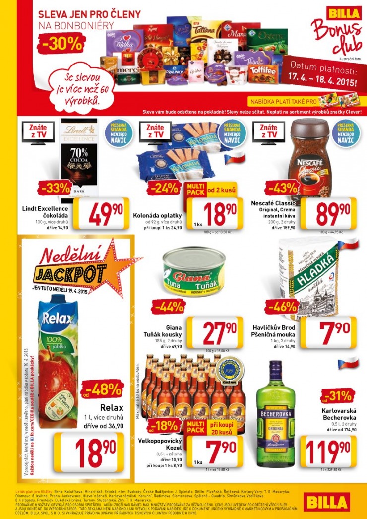 Billa malý od 15.4.2015 15.4.2015- 21.4.2015